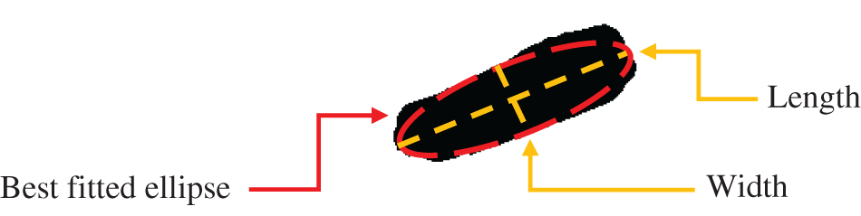 Fig. 3. Determining best fitted ellipse to obtain width (W), length (L), area (A), and perimeter (P).
