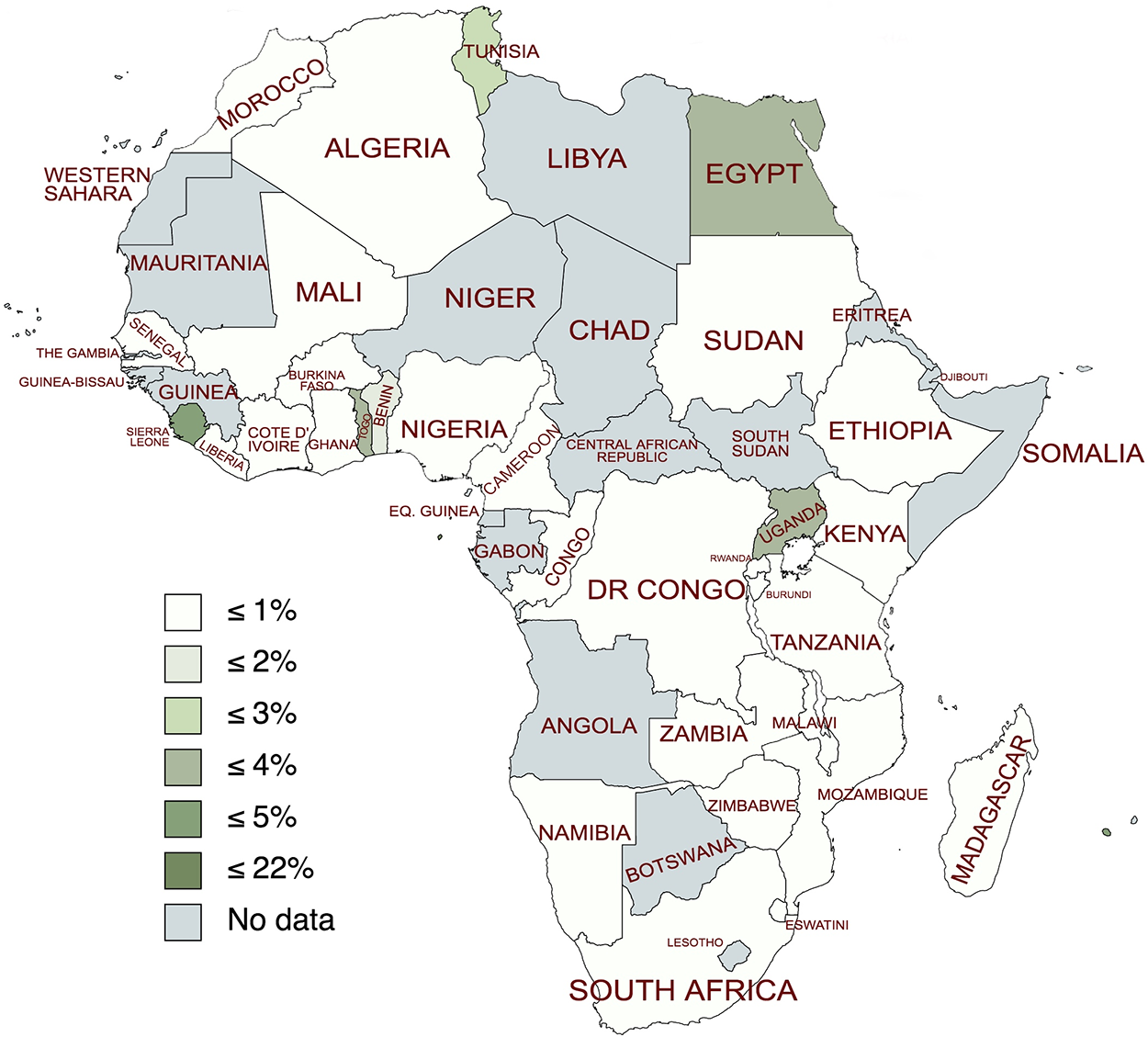 Fig. 6. Map of organic Africa; some African countries report no organic data (data source: fibl.org).